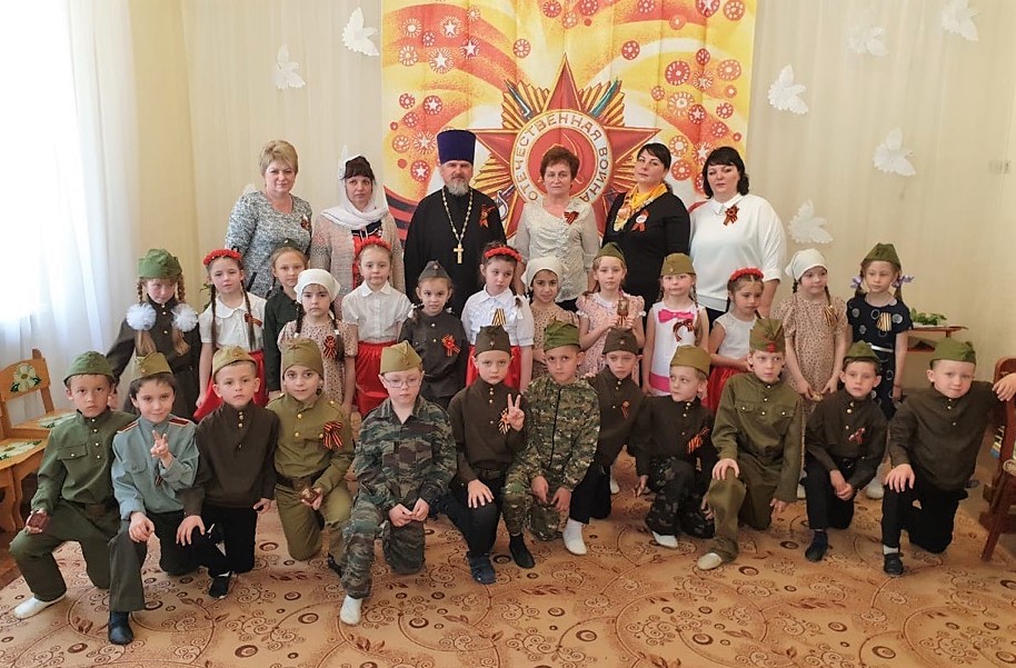 А накануне отец Павел поздравил с праздником 9 Мая воспитанников поселкового детского сада «Малыш». После праздничного концерта, который подготовили дети, батюшка подарил ребятам иконки Христа Спасителя.