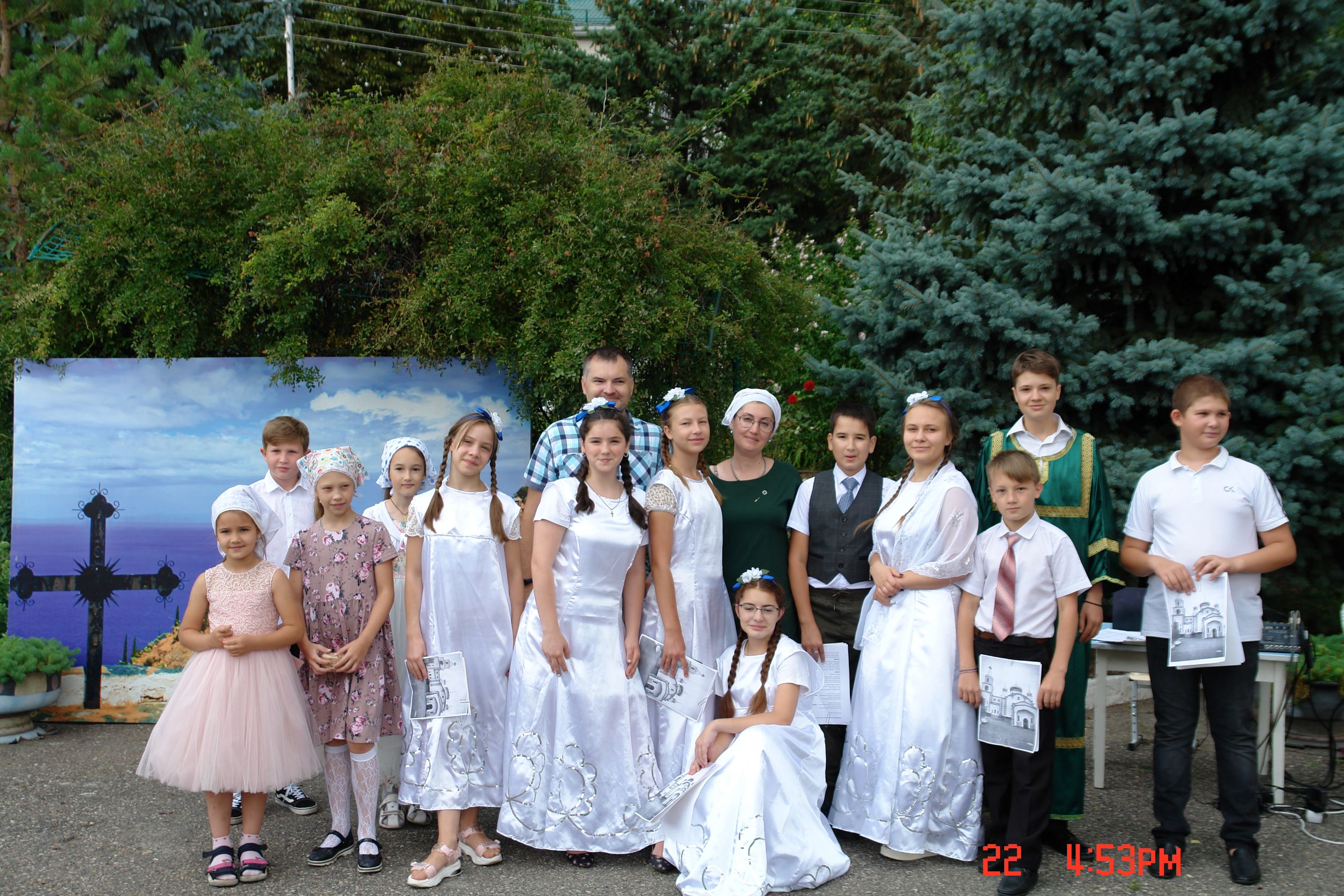 В какой-то момент, во время выступления детей, неожиданно поднялся ветер, налетела черная туча – и пошел дождь. Но ребята не растерялись и продолжали прославлять святого, укрывшись под зонтами. Впрочем, дождь продолжался недолго, вскоре выглянуло солнце и праздник пошел своим чередом. Директор воскресной школы матушка Анна Великородная, поздравляя гостей с праздником, пожелала, чтобы и в их жизни, как и в этот день, тучи задерживались ненадолго, и на пасмурном небе снова появлялось яркое солнце. По традиции после праздничного мероприятия всех присутствующих ждали угощения и сладкие напитки.