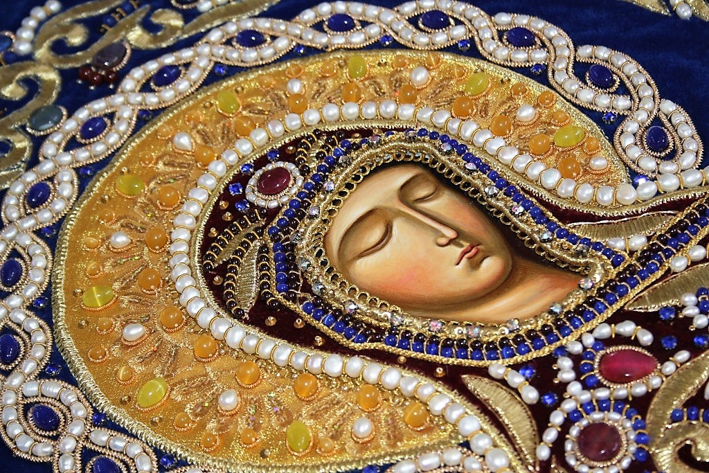 После Святого Причастия и благословения батюшки Марина взялась за работу. Сделала эскизы, которые перенесла на бархатную ткань. «Под молитвы и огонек Сретенских свечей моя работа стала продвигаться. Пролетали дни, месяцы. Не скажу, что сразу все получалось - приходилось несколько раз переделывать одну и ту же работу. Но с Божьей помощью все получилось. Я благодарю отца Павла, что он оказал большую честь и доверие мне и моей семье», - сказала молодая мастерица.