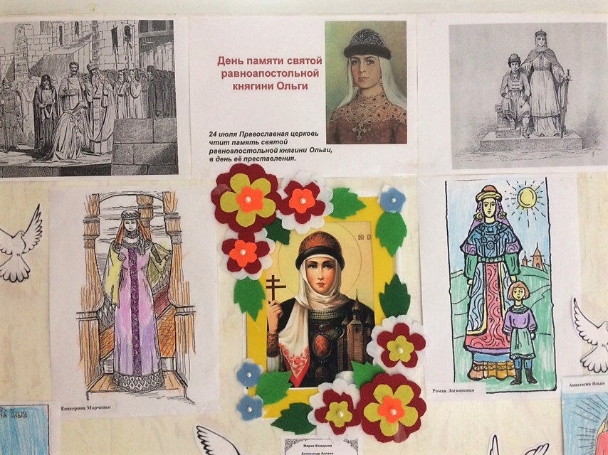 Этот год ознаменовался юбилейной датой со дня преставления святой равноапостольной великой княгини Ольги, духовной матери русского народа, через которую началось просвещение его светом Христовой веры. К этому дню, а также ко дню памяти внука св. княгини Ольги – равноапостольного князя Владимира, крестившего Русь, в приходской воскресной школе были приурочены памятные мероприятия.