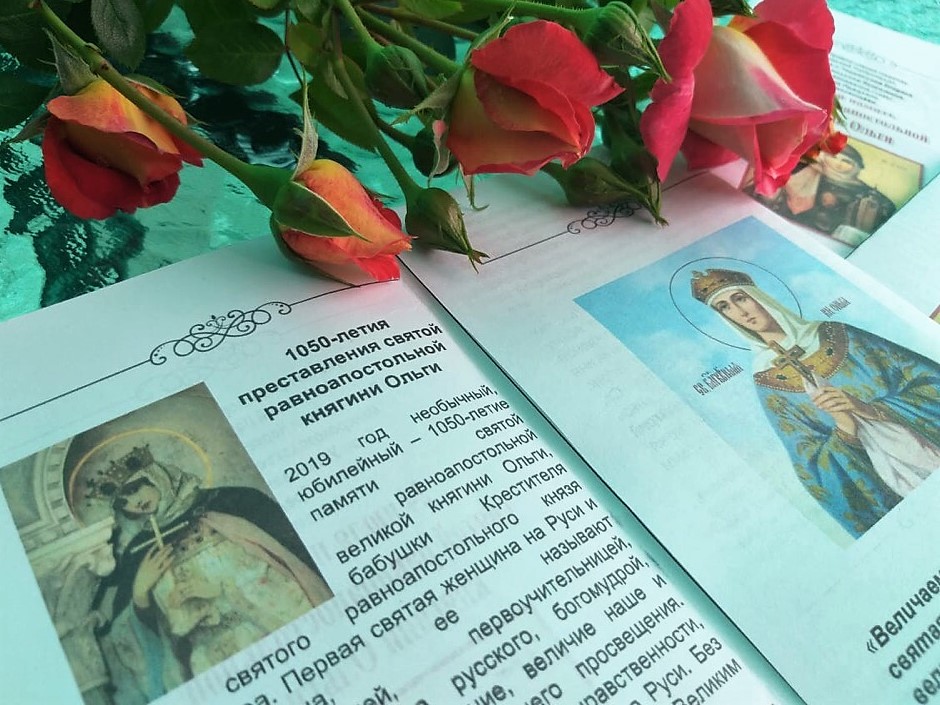 Старшие воспитанники подготовили красочный буклет о святой княгине Ольге. Ребята помладше вместе с педагогами сделали в храме выставку рисунков. А воспитанники средней школы приняли участие в уроке-беседе, посвященном этим великим просветителям земли русской.